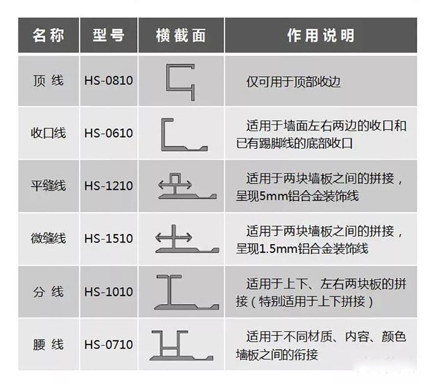 ?鋁合金線條的型號及說明