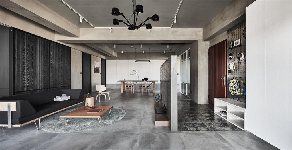 空間引用沉穩(wěn)冷靜的現(xiàn)代工業(yè)風(fēng),